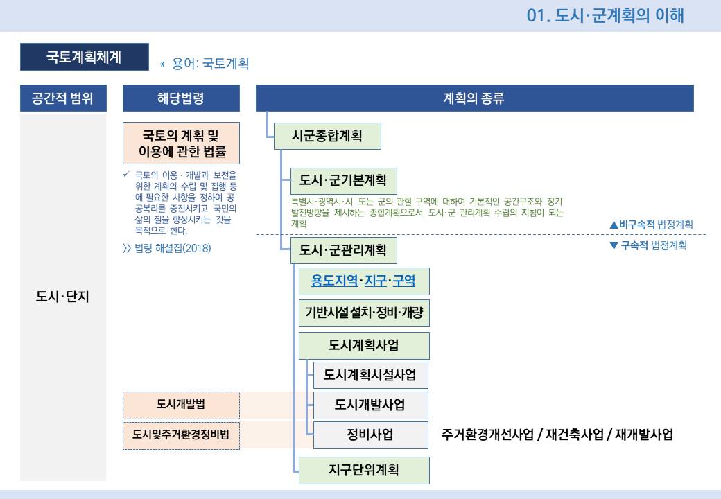 시군종합계획은 비구속적 계획인 도시군기본계획과 구속적 계획인 도시군관리계획으로 구분되어짐.