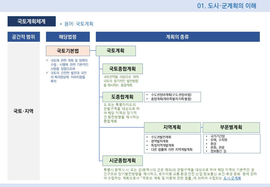 대한민국 국토체계는 국토종합계획, 도종합계획, 시군종합계획으로 구분되어 짐