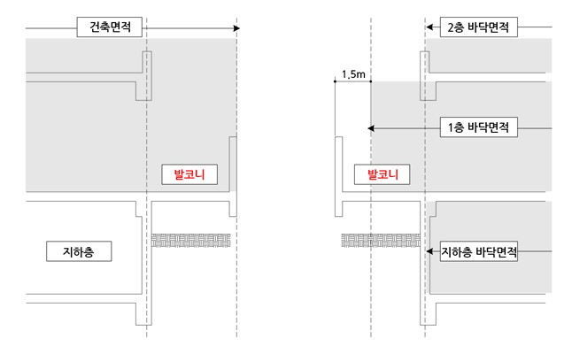 건축물의 외벽(외벽이 없는 경우에는 외곽 부분의 기둥을 말함)의 중심선으로 둘러싸인 부분의 수평투영면적을 말한다.