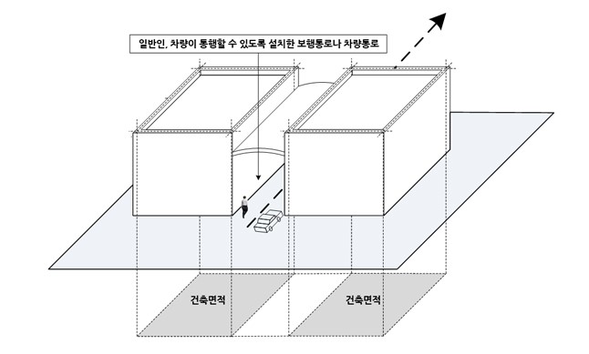㉢ 건축물 지상층에 일반인이나 차량이 통행할 수 있도록 설치한 보행통로나 차량통로