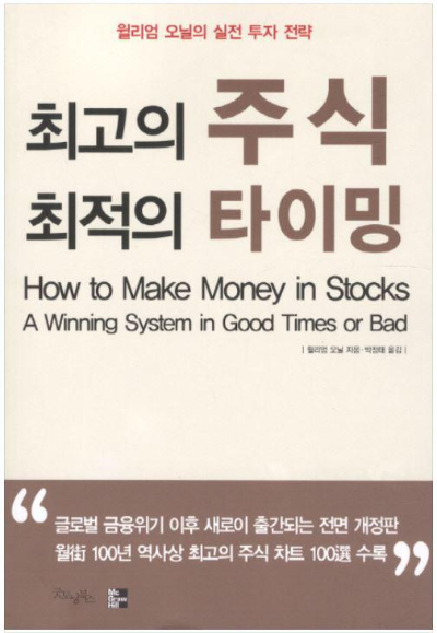윌리엄 오닐은 무조건 손실은 7~8% 정도로 제한을 두고, 목표이익은 20~25% 정도로 설정해서 최종손익이 "+"가 나도록 했다고 한다. 물론 단기간 급등하면 좀 더 기다리는 참을성을 발휘하면서 말이다. 이러한 전략의 가장 중요한 포인트는 최고의 주식을 최고의 타이밍에 샀을 때 통한다는 거다. 아무거나 사서 이런 전략을 썼다가는 계좌가 녹을 수도 있다는 게 함정이다.