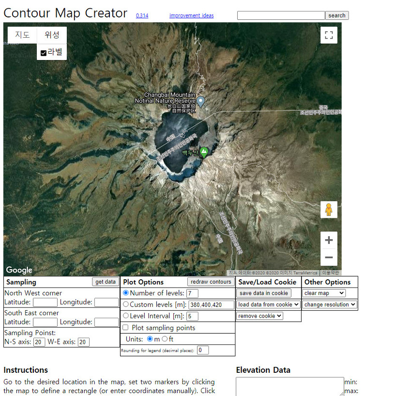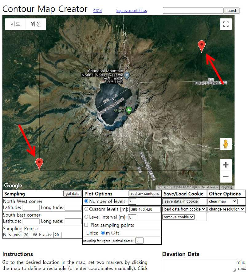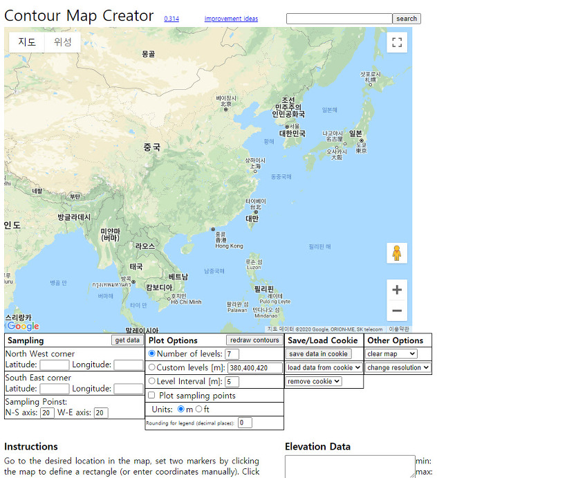 Contour map creator - 지도에서 등고선 데이터를 저장할수있는 웹사이트